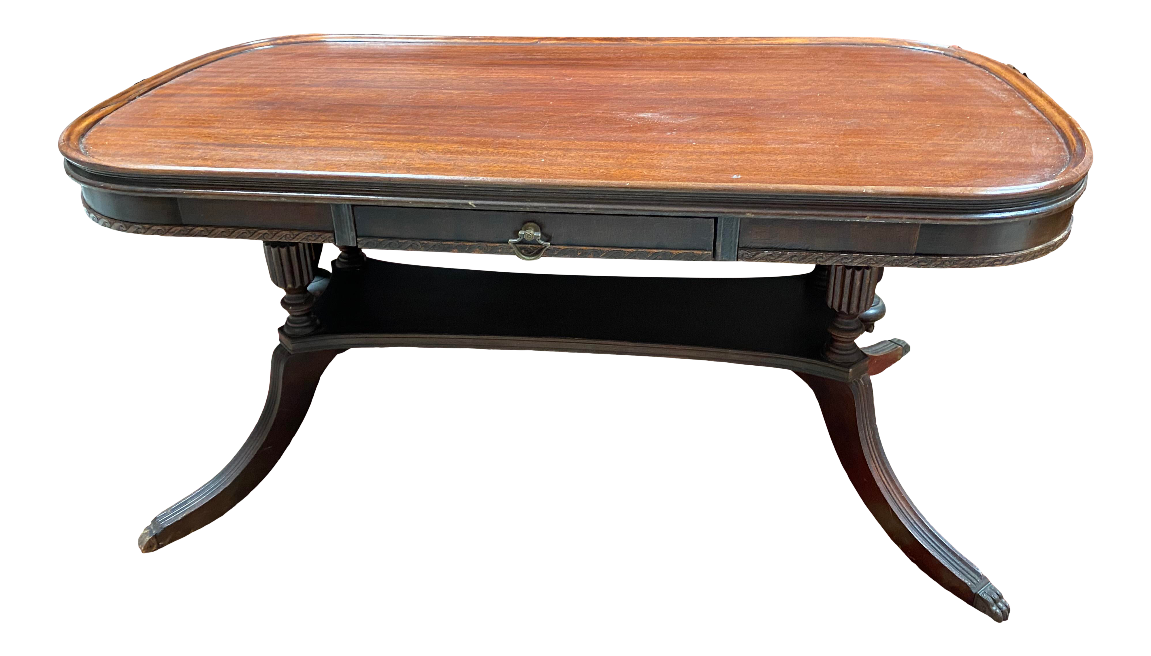 Duncan phyfe lyre harp coffee table. Carved wood removable glass tray table. Made from mahogany with a rectangular form. H 16 x w 35 x d 16 all designs are bespoke and can be made in any size and finish. Shop cocktail & coffee tables at chairish, the design lover's marketplace for the best vintage and used furniture, decor and art. Vntg mersman 6924 duncan phyfe mahogany round coffee table w/inlay 32 diameter. I have a duncan phyfe dark mahogany drop leaf table. The top has a shiny laminate finish and needs a light sanding to give the paint some bite. 1800 mahogany duncan phyfe double pedestal dining table d shape ends antique. Is this duncan phyfe ? Mahogany leather top drop leaf coffee table. Duncan phyfe pedestal coffee table makeover prepping coffee table for paint because this table is mahogany, the tannins in the wood will most likely bleed through the paint, especially because i'll be painting the table white. Duncan phyfe lyre harp coffee table.
